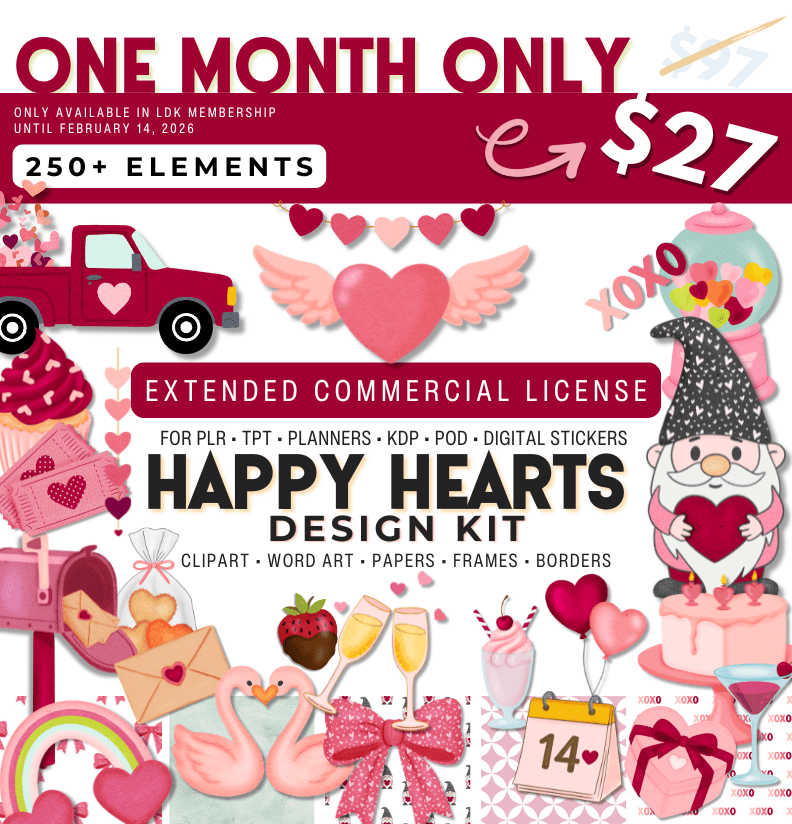 • A monthly design kit of 250+ coordinated graphics so you'll easily be able to create products that look cohesive, polished, and professional.